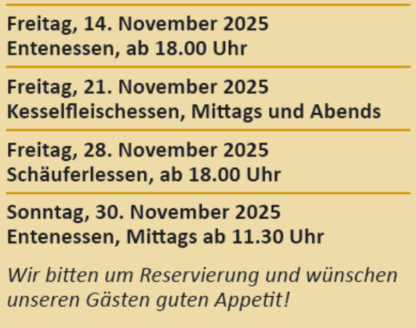 Sondertermin:Sonntag 23. 11. ab 11:30 Uhr ENTENESSEN