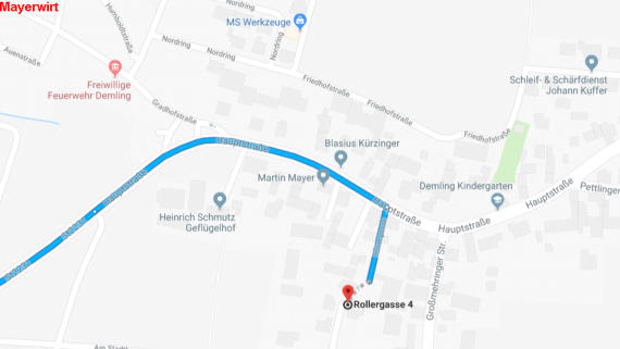 Von Ingolstadt kommend fahren Sie ca. 10 Kilometer Richtung Riedenburg. In der Ortsmitte von Demling gehts dann rechts zum Mayerwirt.Ihr Auto oder Motorrad können Sie direkt vor unserem Gasthaus abstellen. Für ihre Radl haben wir einen extra Fahrradparkplatz.